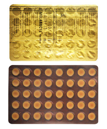 - Vitiligo : 0,4 à 0,6 mg/kg, également 1,5 à 2 heures avant l'exposition.